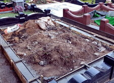 После того, как работа была проведена, клиент посчитал, что в задней части места захоронения требуется дополнительное укрепление. Мы вкрутили пять дополнительных свай, сварили новую сетку и залили ещё одну площадку, которая будет являться основанием для памятников.