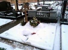 Фундамент под эту конструкцию залит основательно, ведь вес Памятника и гранитных плит составляет почти восемь тонн. Так же мы вывезли грунт и строительный мусор.