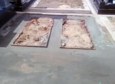 Исходное состояние:Стандартный ленточный фундамент по периметру участка, металлический крест и мраморная плита с надписью