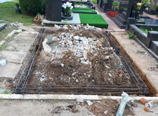 Сначала мы разобрали всё, что было на могиле: демонтировали памятник, сняли гранитный цоколь, разломали бетон.